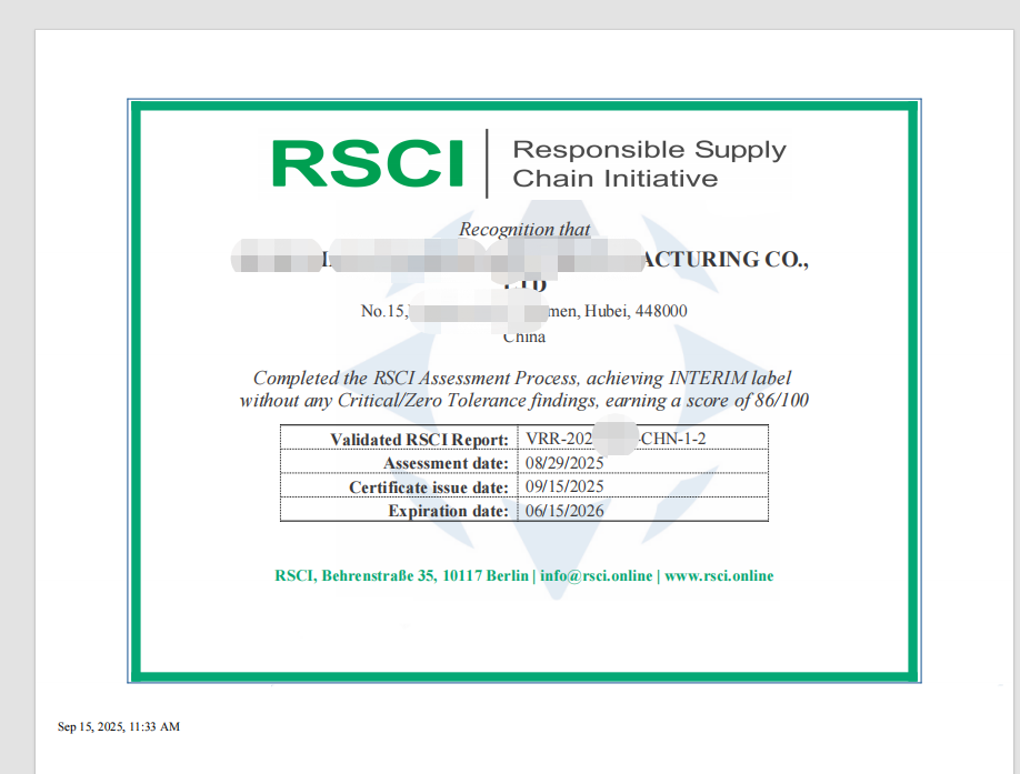 祝贺湖北HT科技公司通过RSCI认证验厂审核