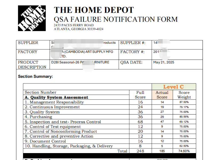 根据THD验厂评分规则,颖嘉工厂以C等级通过审核,获得1年订单合作资格,且享有优先订单分配权。