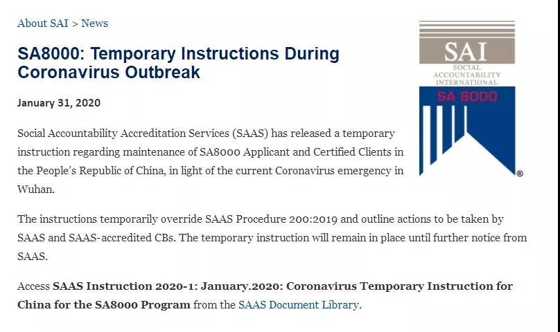 中国SA8000认证客户按SAAS2020-1指令执行:远程审核及发临时证书延缓有效